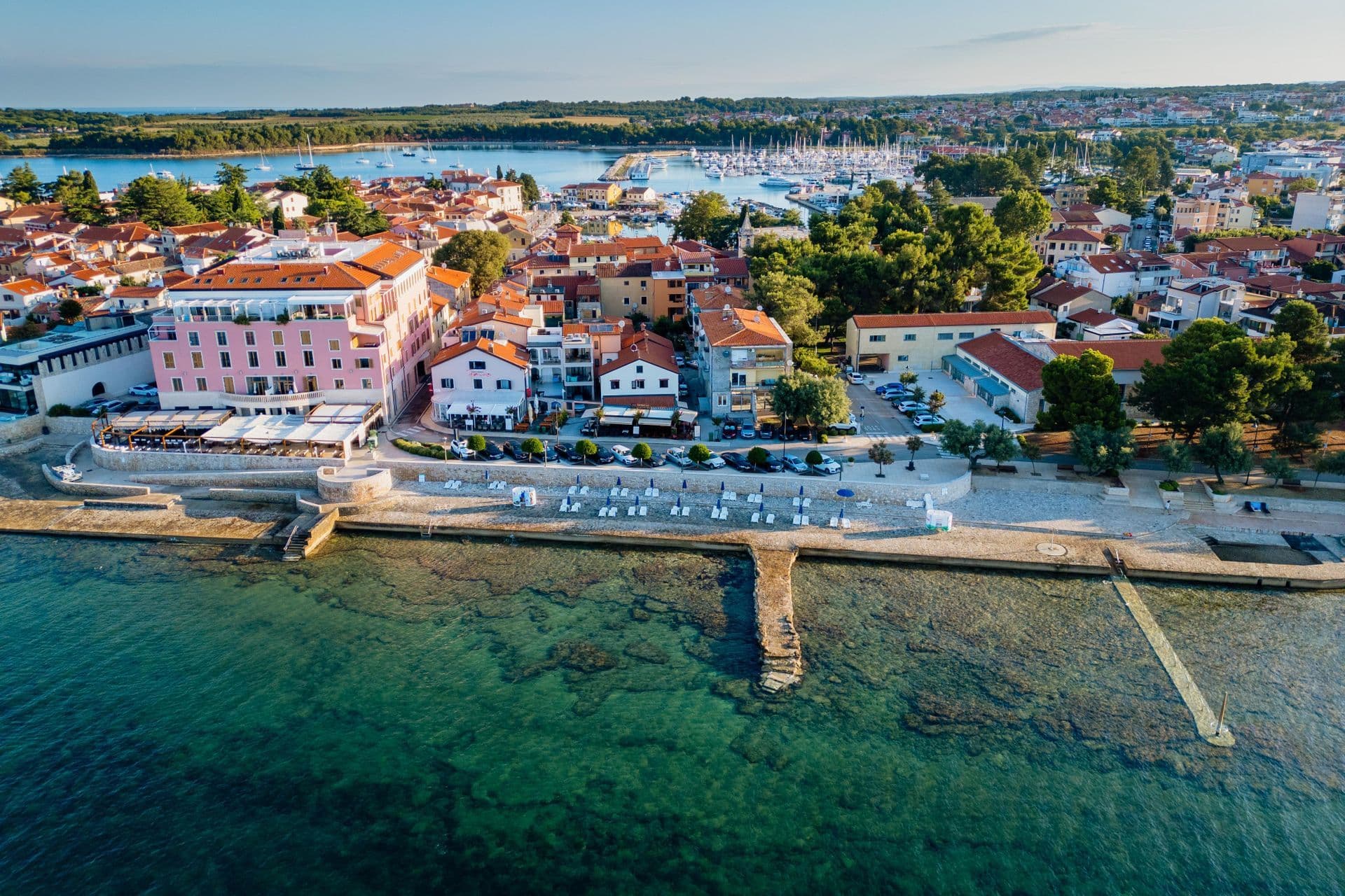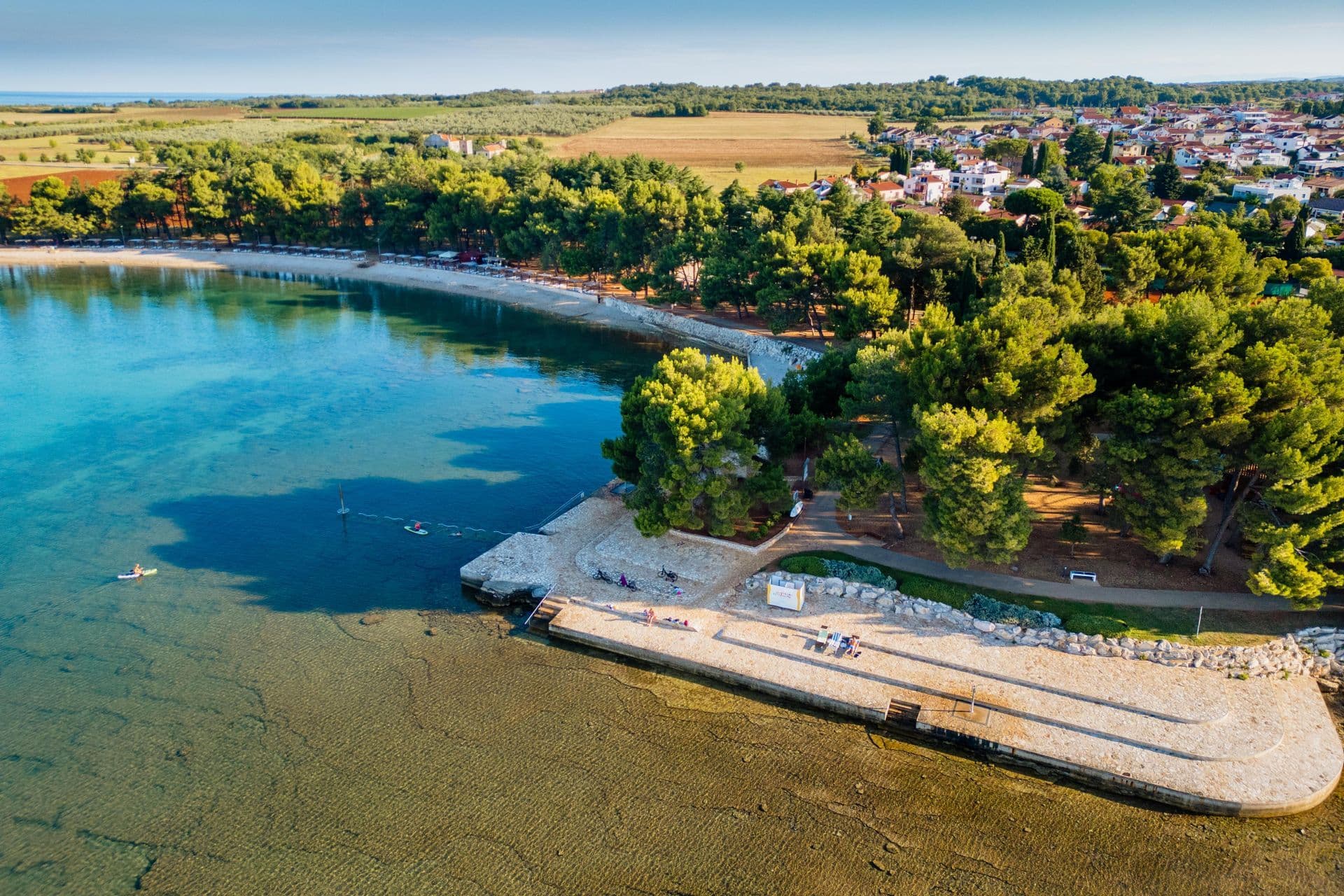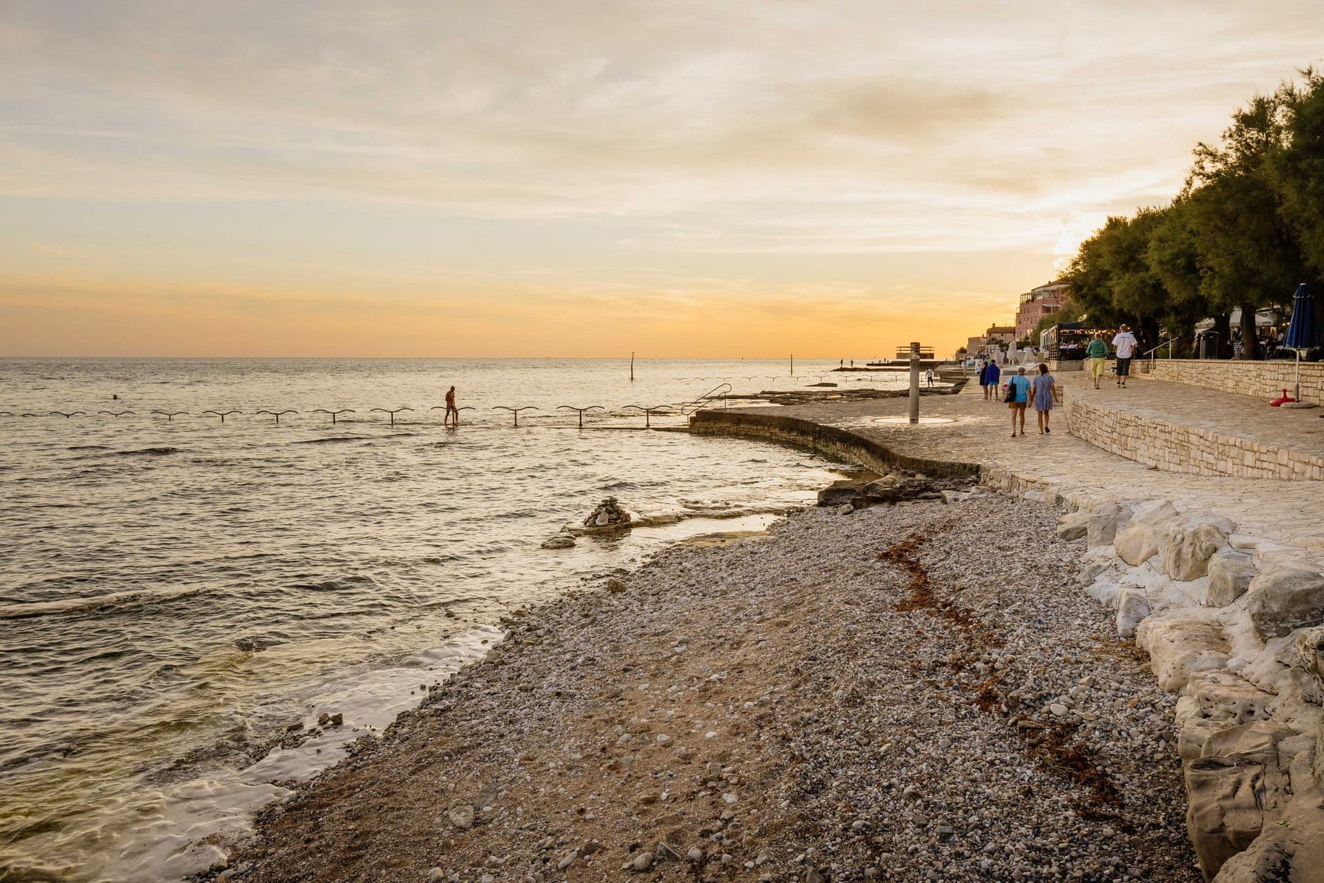 In the village of Dajla, you’ll find a welcoming pebble beach with grassy areas, a shallow sea entrance and family-friendly amenities including a children’s playground, beach volleyball court and beach bar. The atmosphere is relaxed and authentically local – ideal for an easy-going summer day away from the bustle of town. Perfect for families staying nearby and anyone looking for peaceful coves outside the urban centre. Yet Dajla also reveals a quieter side. Beyond the village, the coastline stretches into long rocky and pebble sections, reminiscent of Mareda’s “wild” shore – no infrastructure, just open sea views and a wonderful sense of seclusion. For those willing to walk a little further to find their own hidden corner.