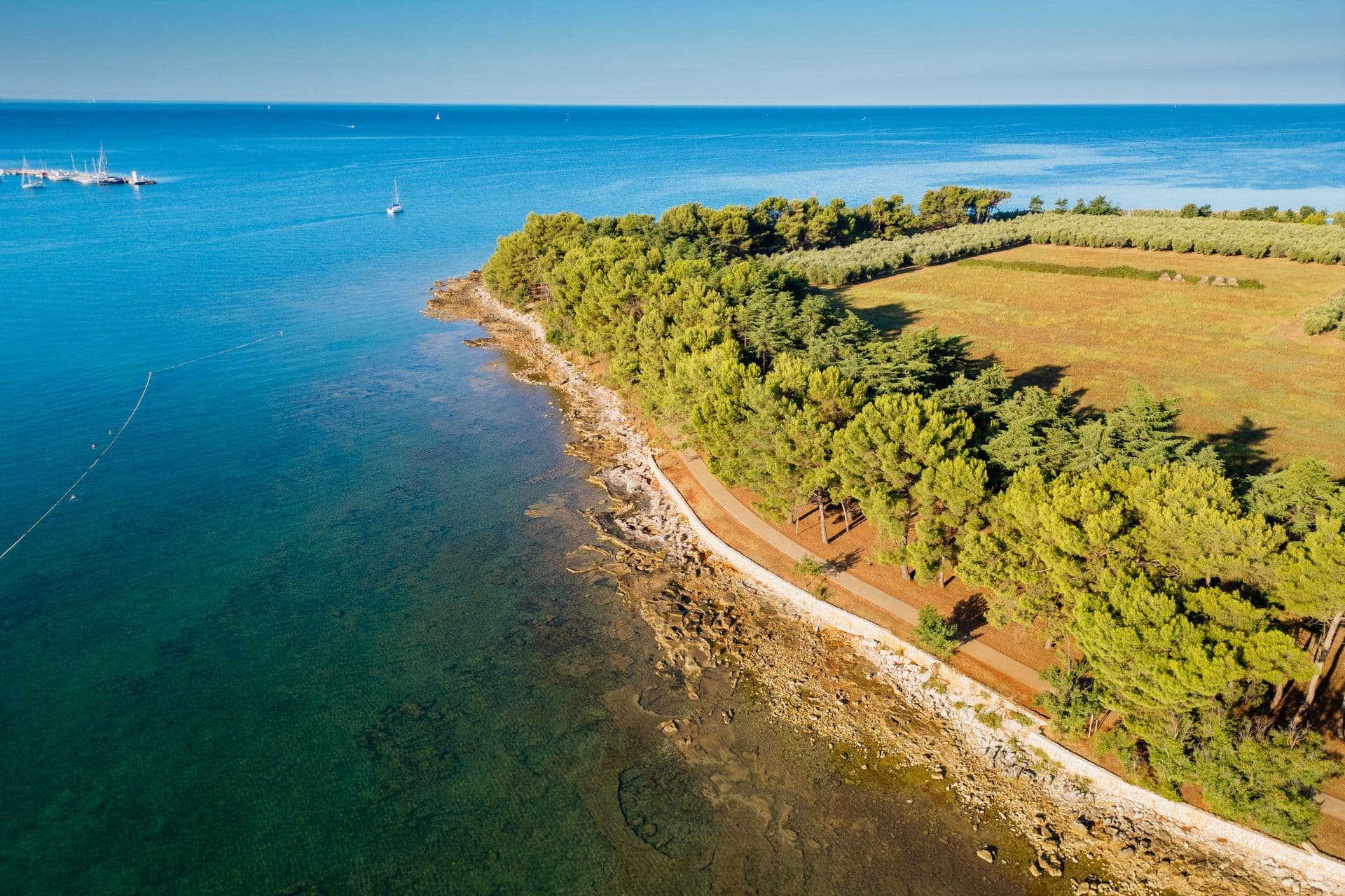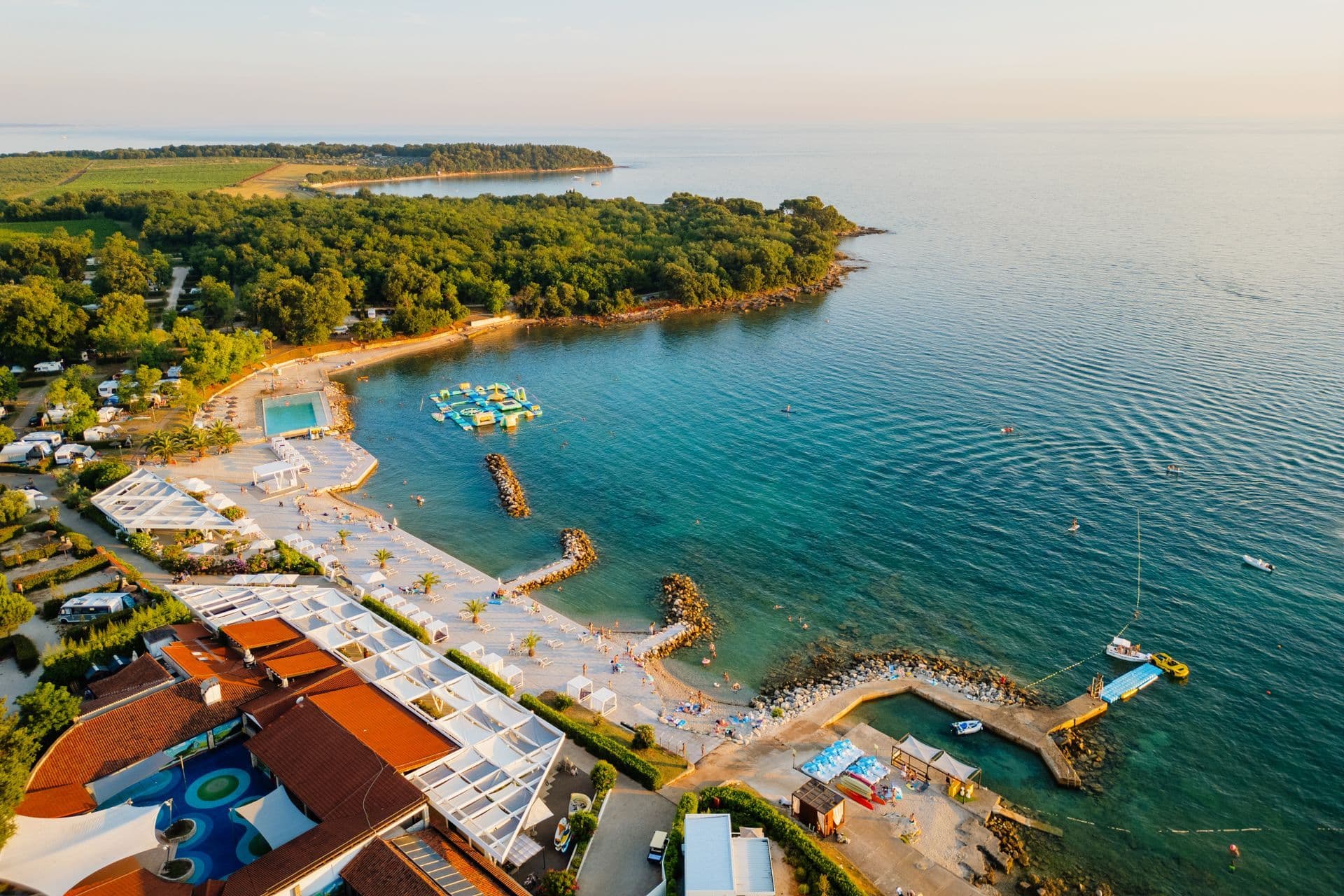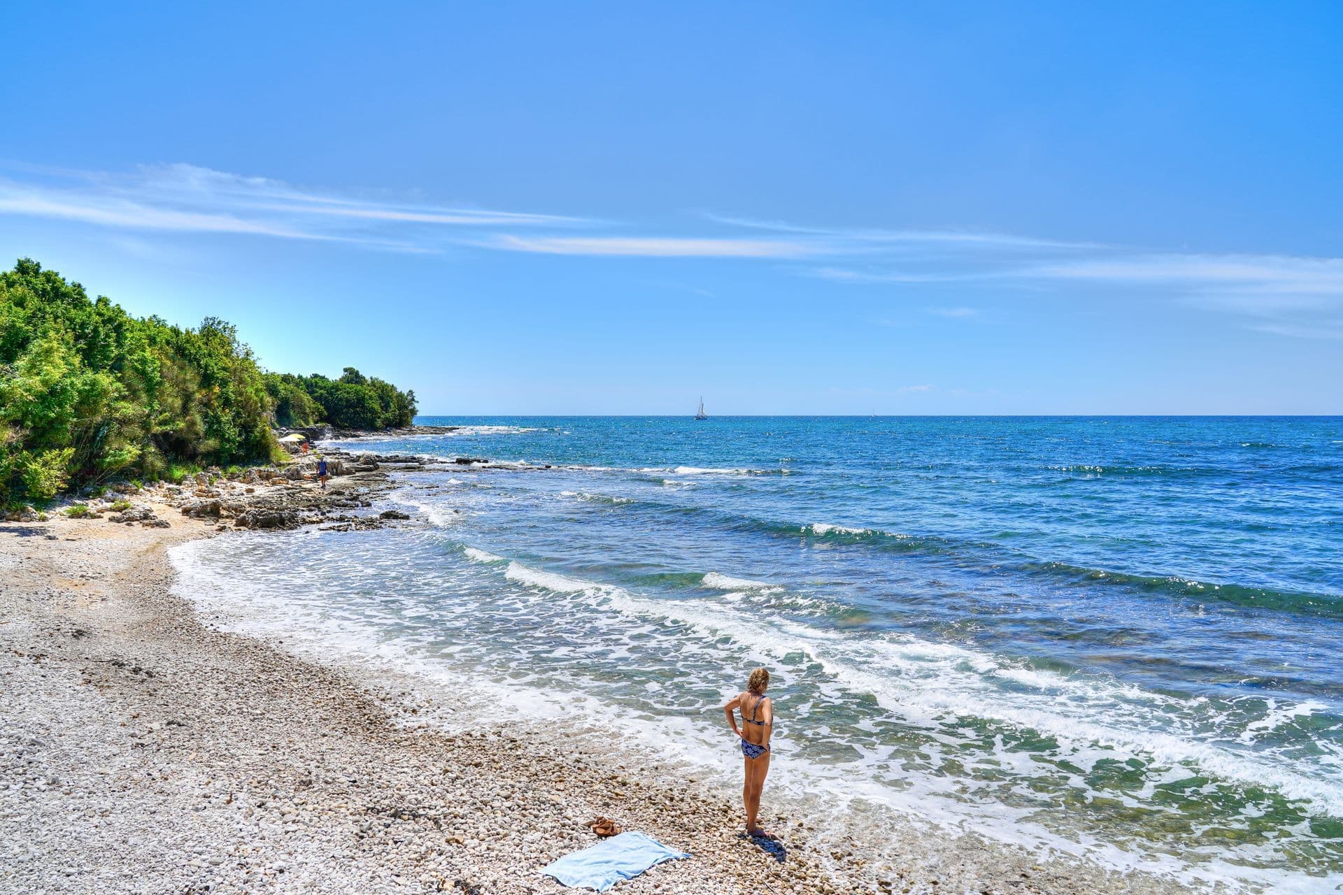 In the village of Dajla, you’ll find a welcoming pebble beach with grassy areas, a shallow sea entrance and family-friendly amenities including a children’s playground, beach volleyball court and beach bar. The atmosphere is relaxed and authentically local – ideal for an easy-going summer day away from the bustle of town. Perfect for families staying nearby and anyone looking for peaceful coves outside the urban centre. Yet Dajla also reveals a quieter side. Beyond the village, the coastline stretches into long rocky and pebble sections, reminiscent of Mareda’s “wild” shore – no infrastructure, just open sea views and a wonderful sense of seclusion. For those willing to walk a little further to find their own hidden corner.