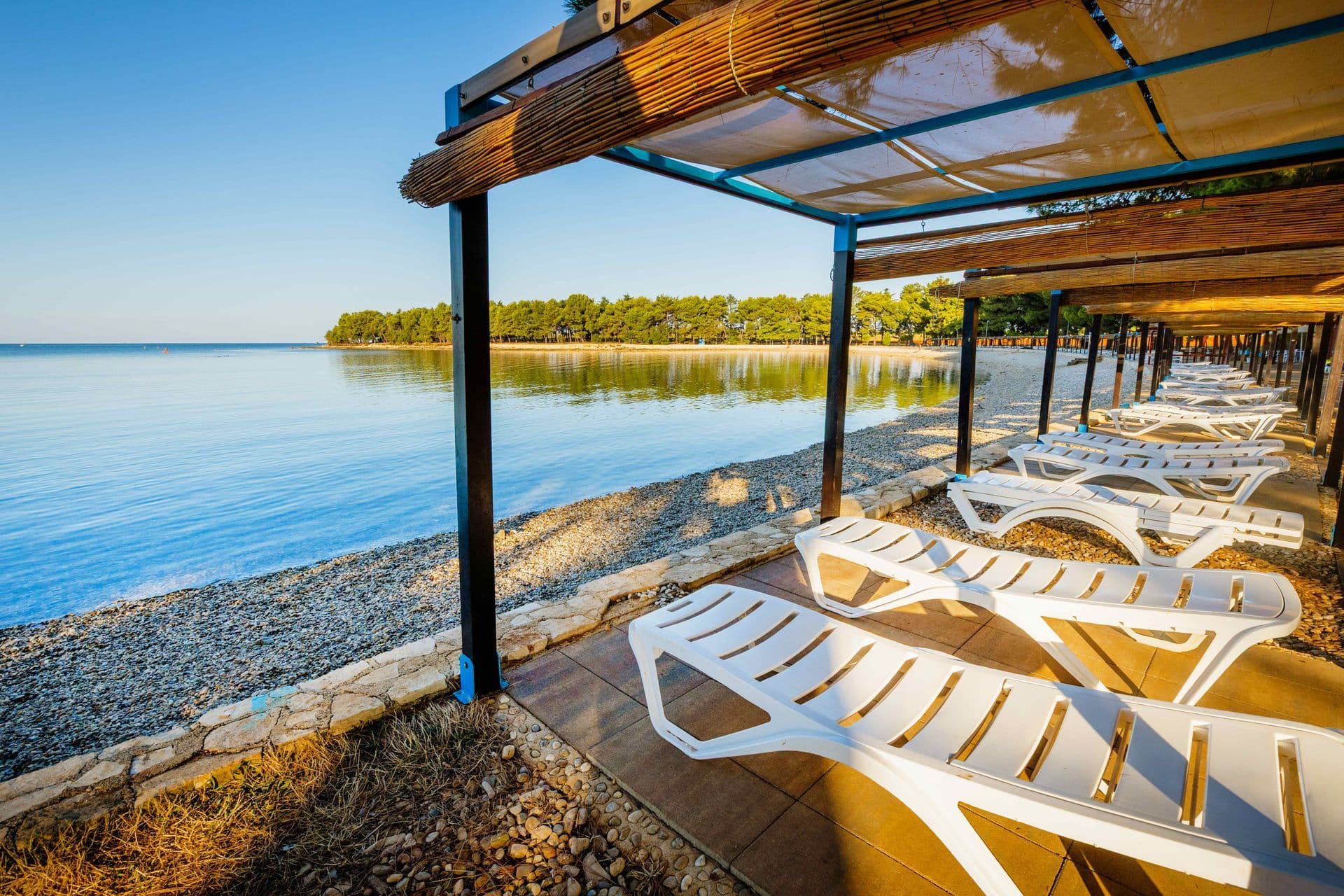 Der Strand des Campingplatzes Aminess Sirena bietet alles, was für gute Unterhaltung und einen unvergesslichen Urlaub notwendig ist. Dieser größtenteils natürliche Steinstrand, mit kleinen gepflasterten Teilen ist mit der Blauen Flagge ausgestattet und verfügt über Umkleidekabinen, Liegestühle und Duschen. Ein Teil ist nur für Haustiere reserviert, die dort immer willkommen sind. Snacks finden Sie in der Oleandar Bar direkt am Meer, die von Kaffee und Cocktails, bis hin zum leckeren Mittagessen alles anbietet. Ein reichhaltiges Grillangebot finden Sie im Restaurant Sirena, und die Unterhaltung können Sie im anliegenden Zentrum Punto Mare, unterhalb des Hotels Aminess Maestral, nur etwa 300 Meter vom Strand entfernt, fortsetzen. Für alle, die zusätzliche Entspannung suchen, gibt es eine Relax Zone mit einem Massagestudio im Freien.