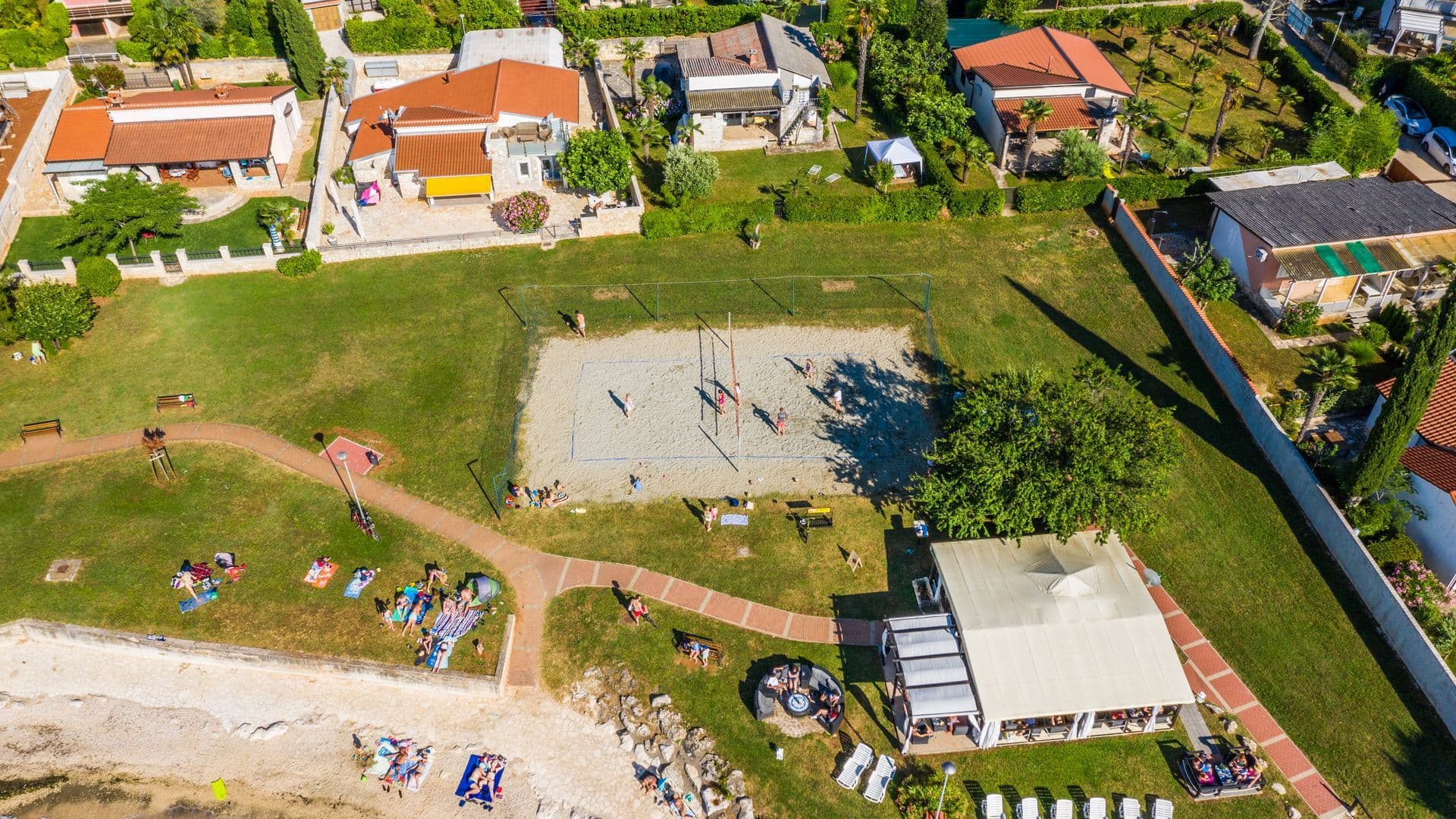 Der neugestaltete Strand des Campingplatzes Aminess Maravea befindet sich im Campingplatz selbst und dank der großen gepflasterten Flächen und der umliegenden Natur können Sie angenehme Tage am Strand mit viel Sonne und Spaß verbringen. Der Strand ist für alle Altersgruppen geeignet und wird seit Jahren mit der Blauen Flagge ausgezeichnet. Außer Meer und Sonne können Sie an diesem Strand auch verschiedene Aktivitäten genießen, wie beispielsweise Tennis, Beachvolleyball und verschiedene Wasserattraktionen. Haustieren ist das Baden hier erlaubt und die Gäste können in den anliegenden neueröffneten Restaurants, Lounge Bars und Grillzonen genießen.