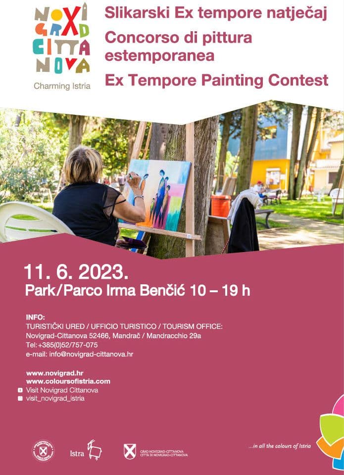 In der grünen Oase des Irma Benčić Parks, der Altstadt von Novigrad, in der Nähe des Meeres und des Stadthafens, wird das malerische Mandrač tagsüber der zentrale Ort, an dem sich die meisten Künstler versammeln und kreieren werden. Die Teilnehmer des Wettbewerbs können sich um Preise in der Kategorie „Ex tempore“ bewerben, mit den am Tag der Veranstaltung entstandenen Kunstbilder - zum Thema "Charmanter Novigrad".