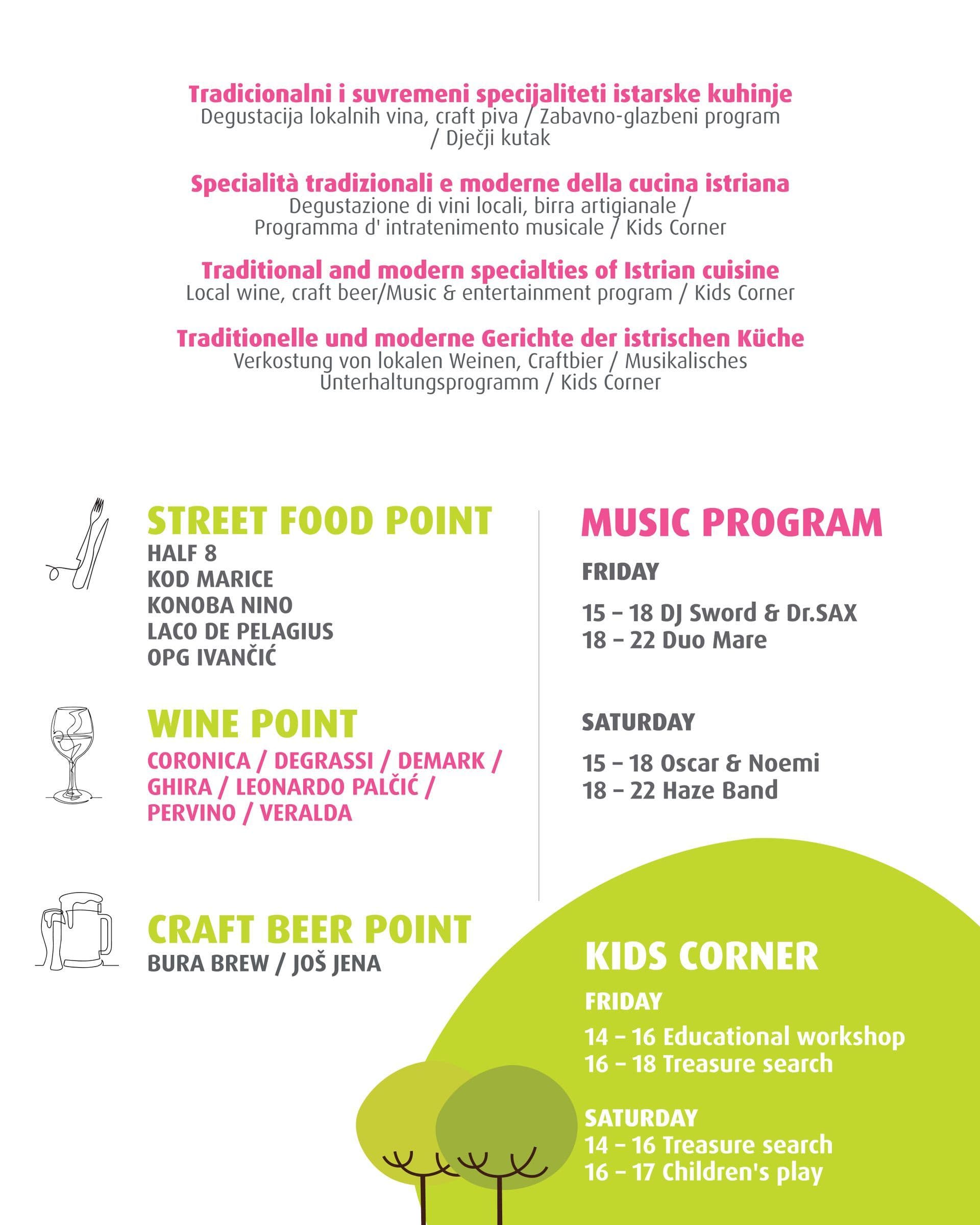 Das Festival wird von mitreißender Live-Musik und ausgelassener Stimmung begleitet und bringt Einheimische sowie Gäste aus Kroatien und dem Ausland zusammen. Auch an die jüngsten Besucher ist gedacht: Ein unterhaltsames Programm mit Kindervorstellungen und kreativen Workshops findet im großzügigen und sicheren Fischerpark von Novigrad statt.