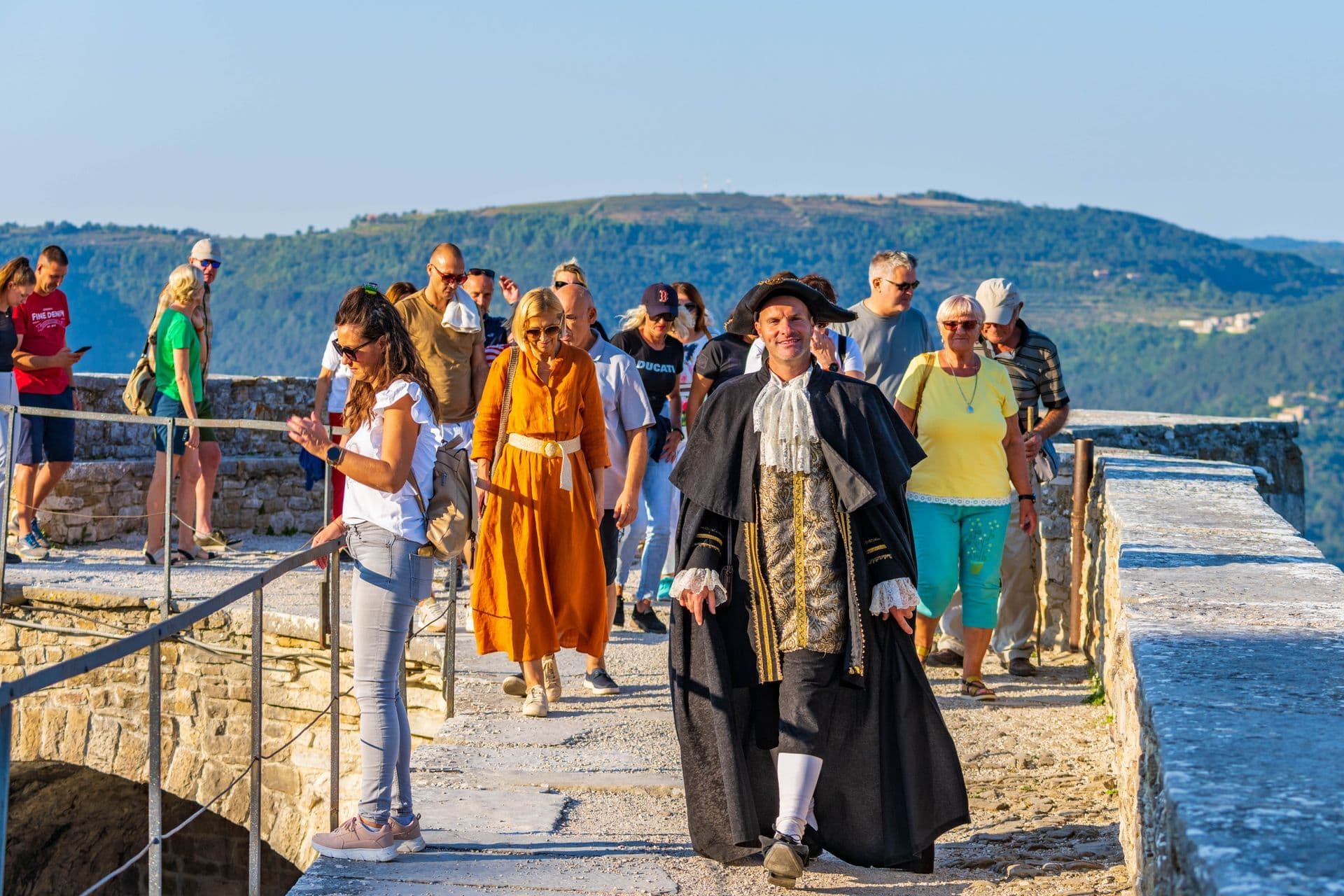 Prošećite Motovunom u pratnji mletačkog podestata Marca koji će vam ispričati priču o povijesti Motovuna iz vremena Mletačke republike (Venecije), koja je Motovunom vladala 526 godina, ali i iz vremena prije i nakon njihove vladavine. Motovun je pitoreskni srednjovjekovni dragulj iznimno bogate povijesti s najočuvanijim fortifikacijskim sustavom u Istri, a najveći utjecaj na razvoj i današnju vizuru Motovuna imala je upravo Mletačka republika, koja je Motovunom vladala od 1271. do 1797. godine.
