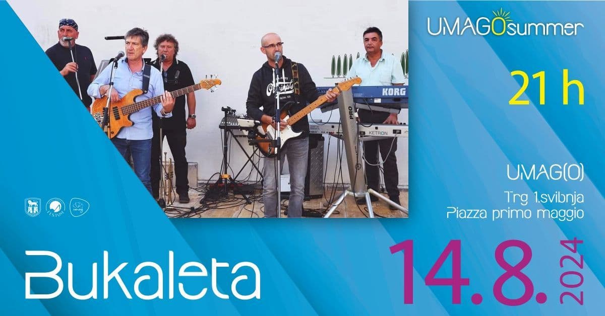 Umagično ljeto se nastavlja, i to u vedrom i veselom tonu uz naš domaći bend „Bukaleta“. Pridružite nam se u srijedu, 14. kolovoza na Trgu 1.svibnja s početkom u 21:00h!