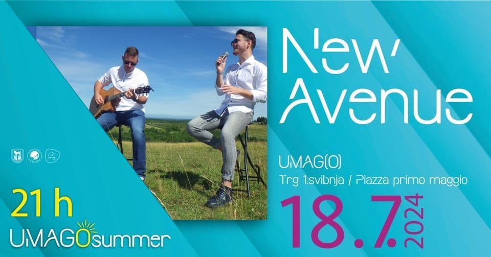 Umagično će ljeto na Trgu 1.svibnja začiniti izvanredni trio „New Avenue“ (Bernard Udovičić, Luka Radošević i Erle Đurđević). New Avenue je mladi duo koji uz stare i nove hitove publici želi pružiti novu dimenziju. Njihova je glazba aranžirana s dodatkom čarolije koja će se sjajno uklopiti u naše Umagično ljeto.