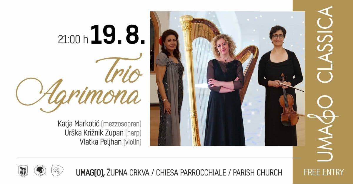 „Trio Agrimona“ komorni je trio akademski obrazovanih glazbenica, jedinstven i osebujan po svojem sastavu koji stoga predstavlja jedan nov i originalan glazbeni izričaj. Stapanjem toplog timbra mezzosoprana, violine i viole uz moćnu potporu bogata dijapazona harfe, ovaj trio pruža pravo osvježenje svojom bogatom i raznovrsnom paletom muzičkog kolorita.