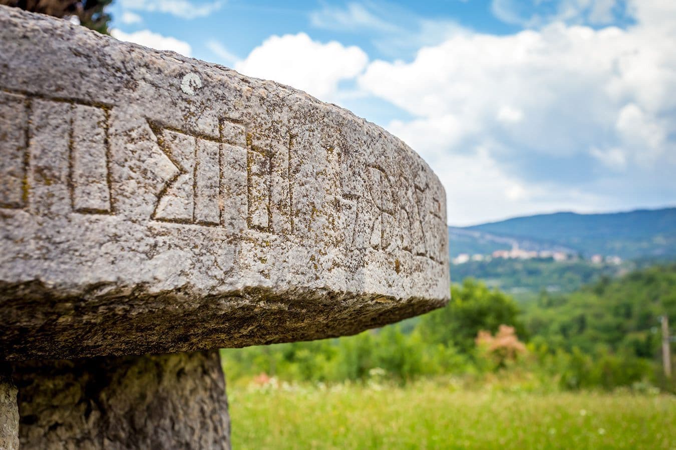 The Glagolitic Alley is 7 km long and leads from Roč to Hum. It comprises 11 commemorative headstones representing the development and Croatian roots of the Glagolitic script, especially in Istria.