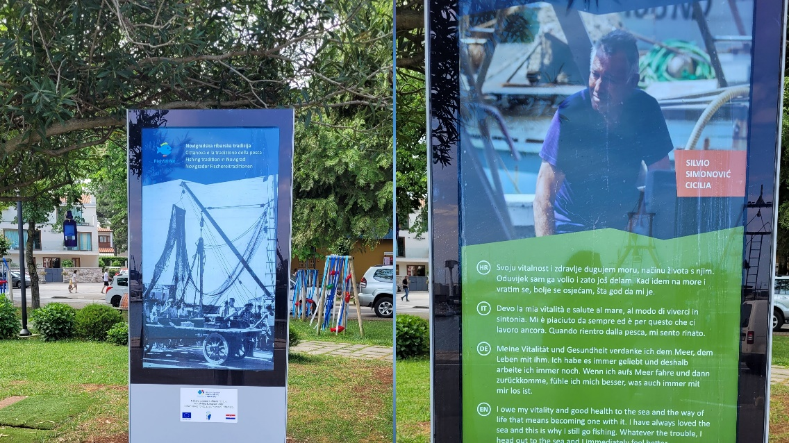 As you stroll by the city harbour of Mandrač , next to the bell tower, along the promenade in Karpinjan, or while visiting the Tourist Information Center in Novigrad, your attention will be drawn to the large freestanding screen showcasing historical photographs of Novigrad. Engaging information about the history and present of fishing in Novigrad will be presented in textual and video formats in four languages.