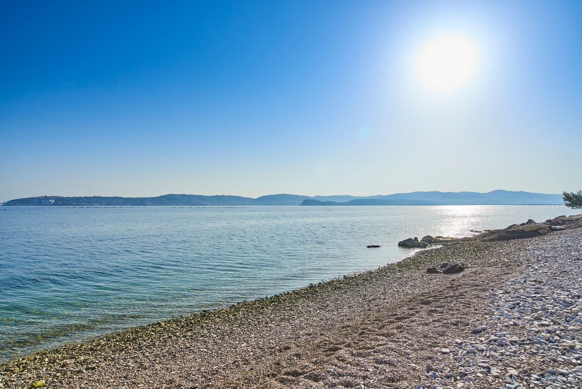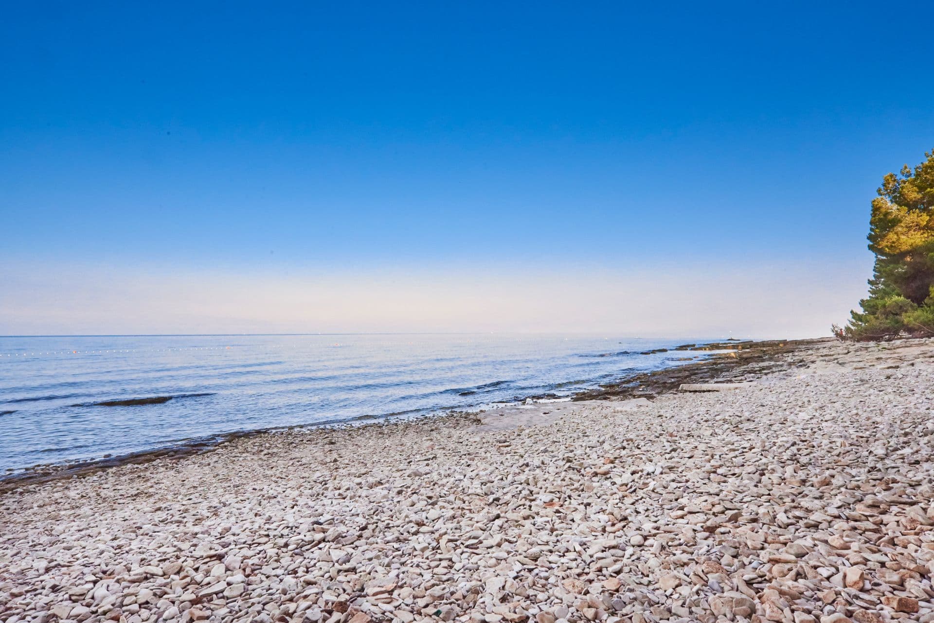 Kanegra beach is located at Kanegra Resort. It is 10km from Umag. It is surrounded by greenery in one of the most beautiful bays in northwestern Istria. The beach and the sea bottom are covered in pebbles, making entry into the sea easy. The trees in the background provide natural shade throughout the entire day. If you have children, this is the ideal beach for you. A naturist campsite and beach are located nearby.