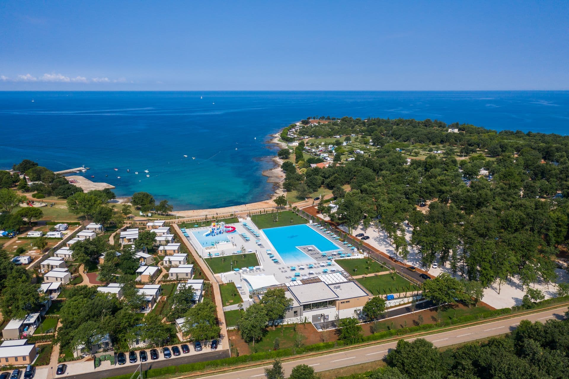 The pebble beach at Camping Park Umag is 9km from the centre of Umag. The beach has paved and rocky parts, as well as a small bay with large pebbles. Free umbrellas are available for use, while lounge chairs are available to rent. A grassy area with pine trees is located near the beach. Near the beach, you will find cafés, restaurants, and a sports centre for active holidaymakers.