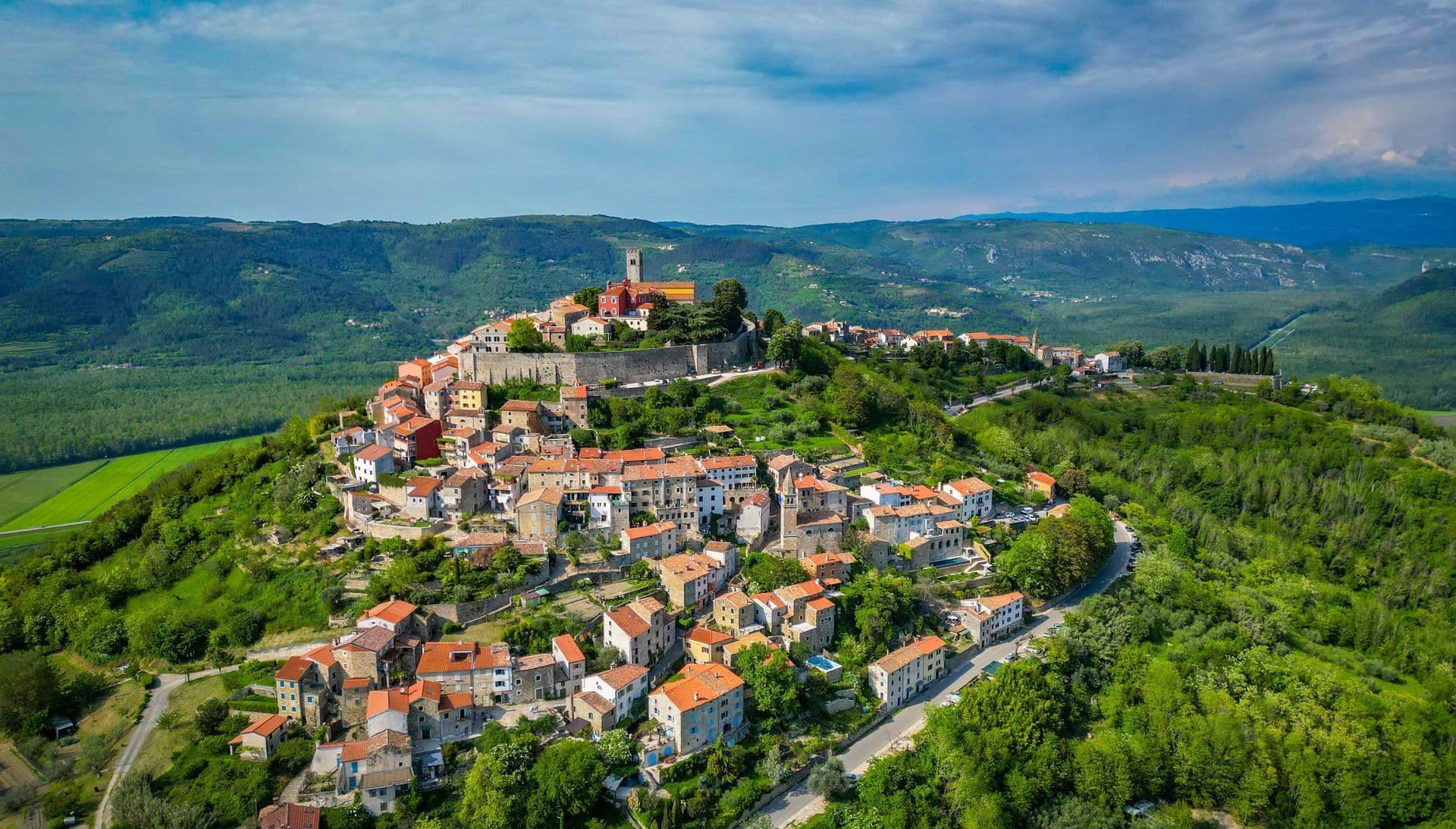 Perched above the Mirna river valley, at an altitude of 277 metres above sea level, you will find one of the most distinctive landmarks of the Istrian hinterland: the famous Istrian medieval town of Motovun (Montana in Italian).