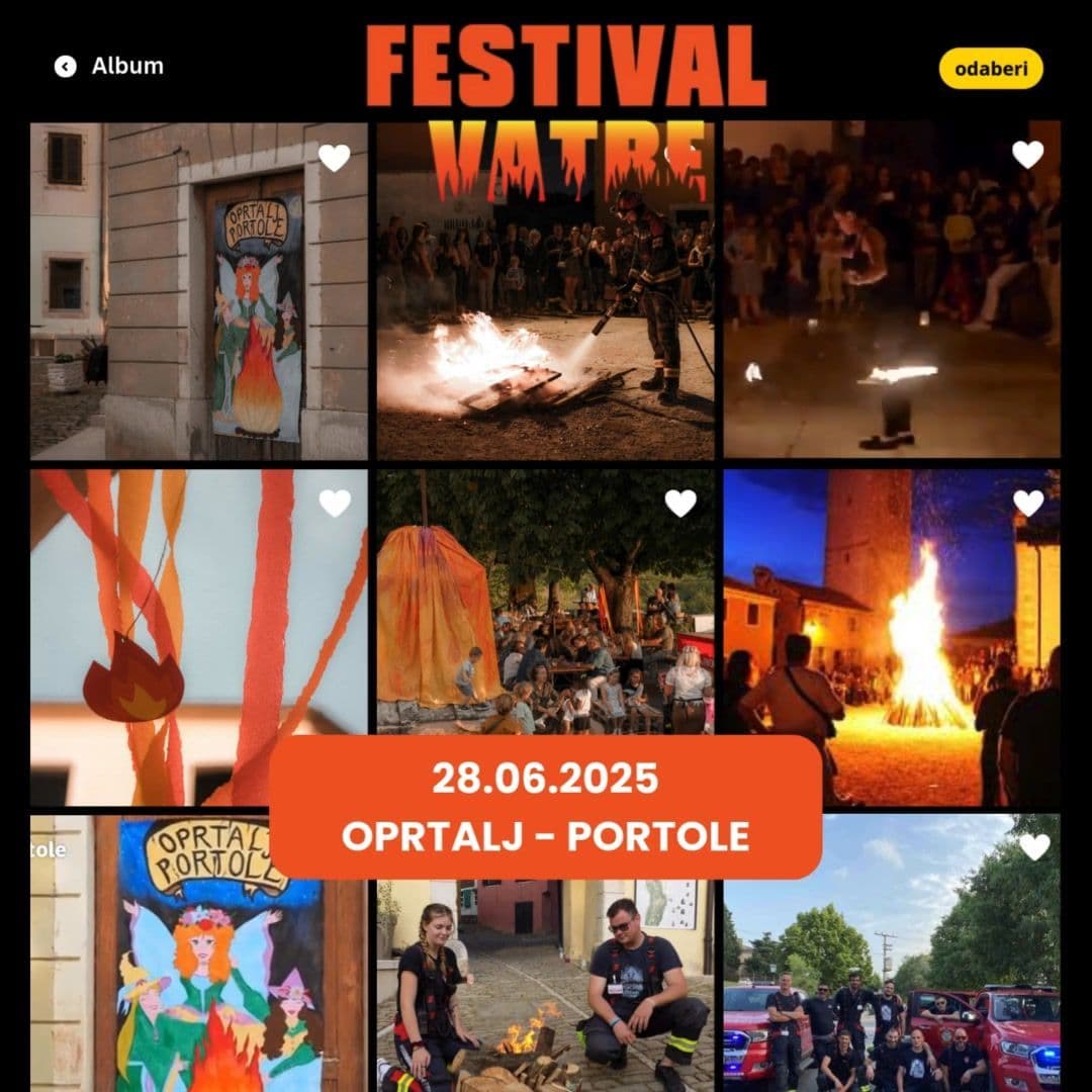 Saint John's Eve is the eve of celebration before the Feast Day of Saint John the Baptist. In many countries bonfires are lit on the evening of 28 June for people to jump over. This custom is associated with the harvesting traditions and the beginning of summer. According to the tradition, bonfires are built on the shores of lakes, near rivers or on the beaches so that they can be seen as far away as possible. This custom is present in all Croatian regions, including Istria. In the village of Sv. Ivan (Saint John) near Oprtalj a tall bonfire was built by the inhabitants and then jumped over by children, but like many other customs this one slowly falls into oblivion. That is why the Fire festival in Oprtalj is organized – to revive an old tradition that culminates when a bonfire is lit.