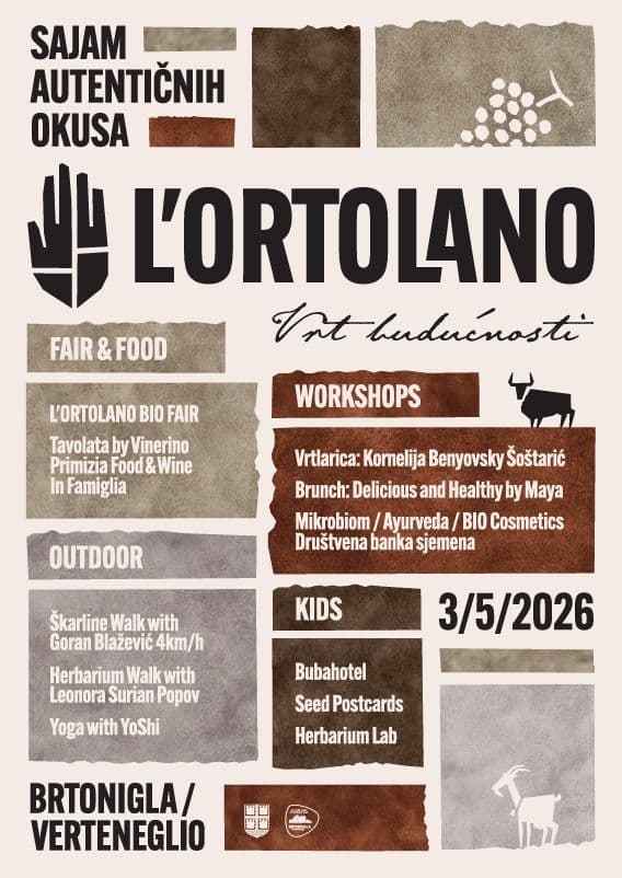 We invite you to the fair of authentic flavors “L'Ortolano”, which will take place on Sunday, May 3rd, from 10:00 AM to 8:00 PM in Brtonigla.