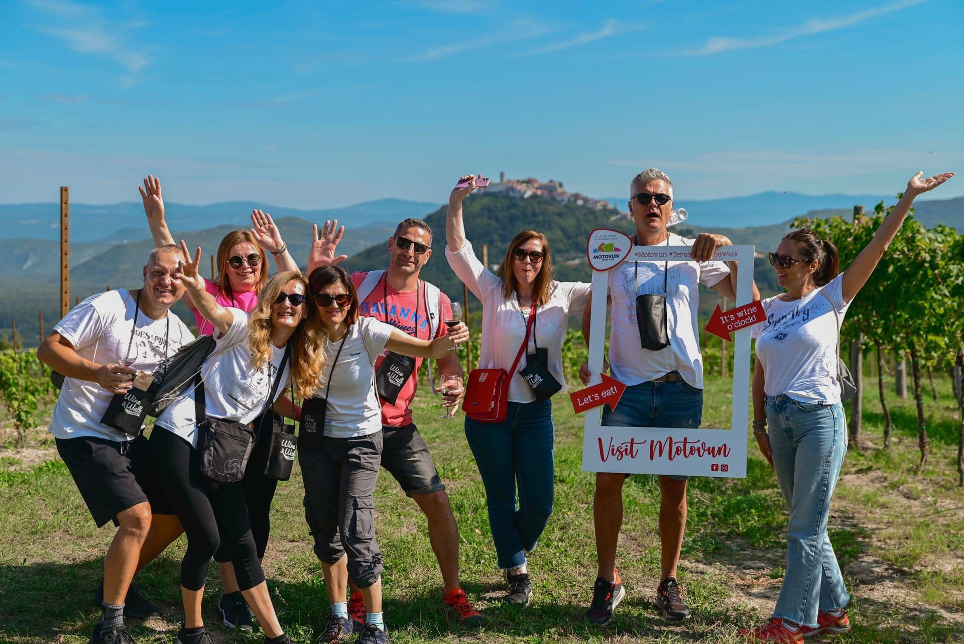 Because it represents the most important elements of Wine & Walk: a great team, beautiful nature, and the view of magical Motovun. And, of course, balancing with wine glasses.
