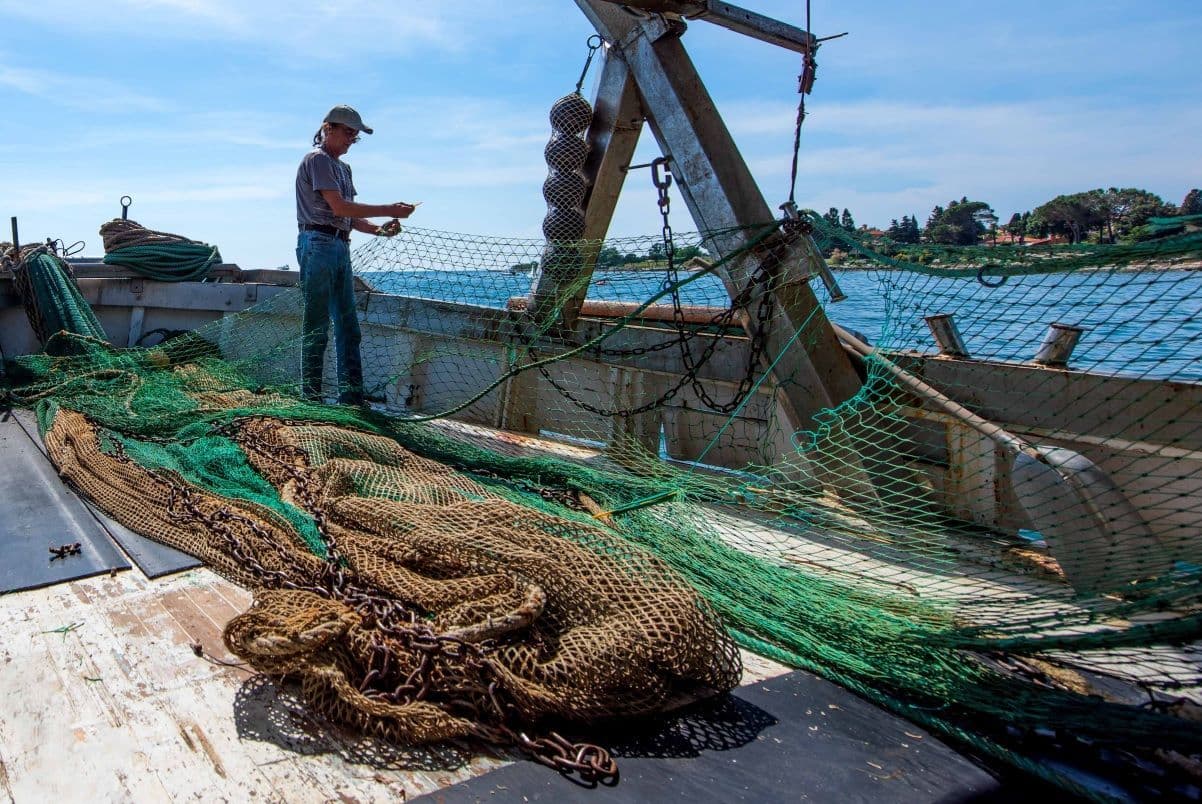 Se nelle giornate autunnali passeggiate sul lungomare e notate una barca in lontananza con la lampara rivolta in direzione del mare gelido dalla bora, state osservando i pescatori locali a caccia di calamari con l’antica tecnica di pesca a fondo. Con continui movimenti su e giù della lenza con piombino cercano di animare l’esca, perché anche il calamaro è un pescatore. Quando abbocca all’esca, bisogna tirarla velocemente fuori, perché se lo prendete per un solo tentacolo, il calamaro potrebbe spruzzavi d’inchiostro per poi scomparire nelle profondità marine.