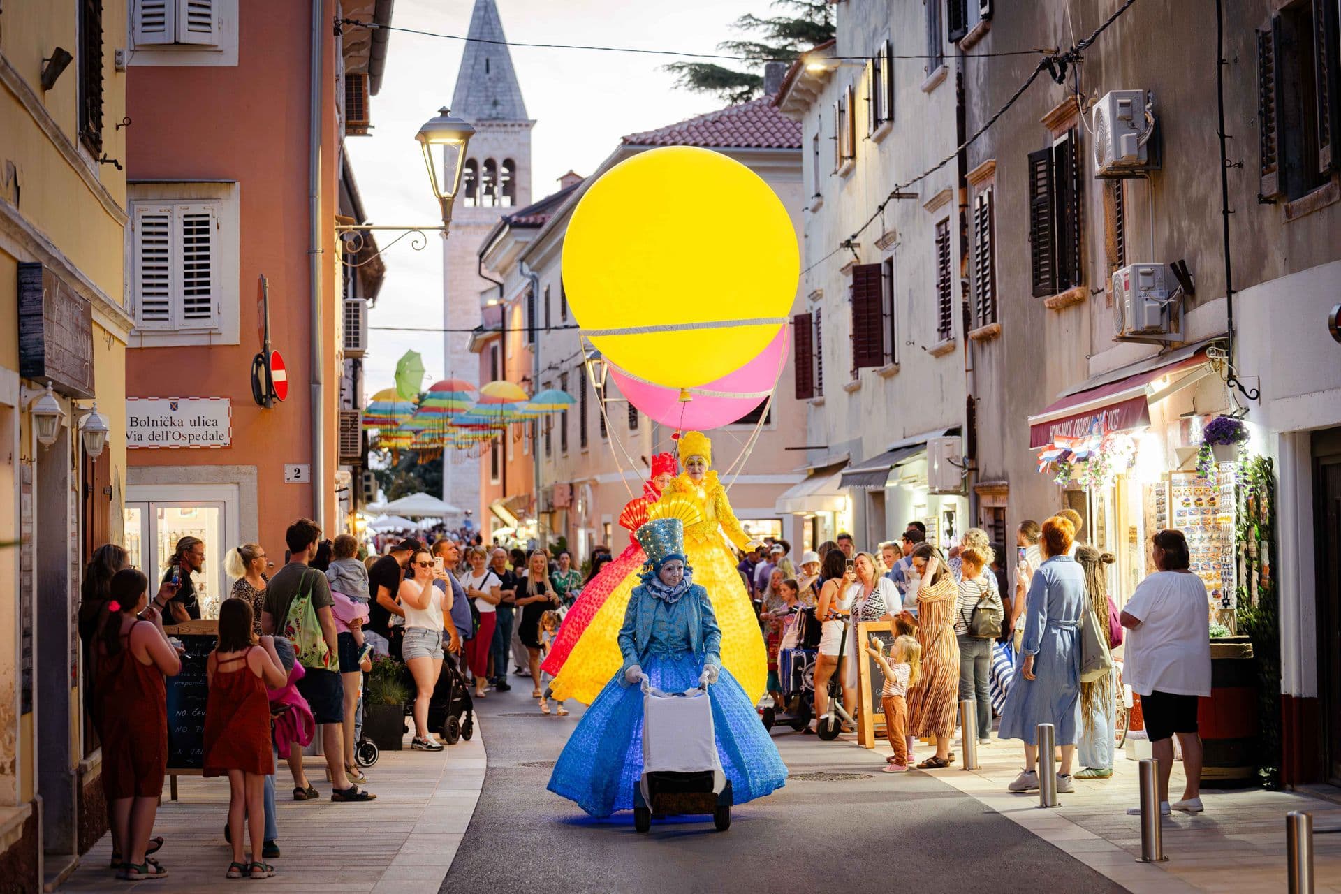 Per rendere l’atmosfera della CittaNova magica ancor più speciale, durante queste giornate saranno allestite delle particolari scenografie, come i variopinti ombrelli pendenti che ricoprirono le volte delle vie, o i pini centenari “vestiti” di colori e i balconi del palazzo cittadino addobbati per l’occasione con palloni da spiaggia!