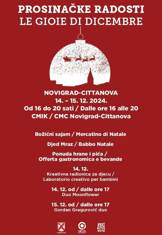 Gioie di Dicembre è un evento organizzato congiuntamente dalla Città di Novigrad-Cittanova, dall’Ente per il turismo di Cittanova e dal CMC – Centro per le anifestazioni e la cultura, con il prezioso supporto dell’associazione Naša djeca.
