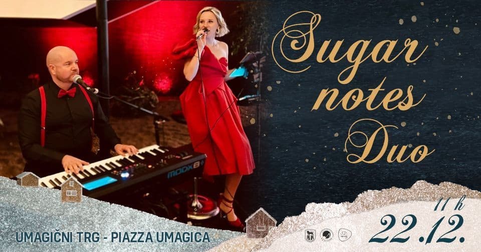 Nelle prime ore del mattino, in Piazza Umagica arriverà il duo Sugar notes Duo. Andrea Milan ci delizierà con la sua splendida voce, accompagnato dal pianoforte e dalla voce del professor Giorgio Sugar. Per questa festività, la coppia ha preparato un programma speciale composto da una serie di classici natalizi come "White Christmas", "Winter Wonderland", "Let it Snow", "All I Want for Christmas" e molte altre.