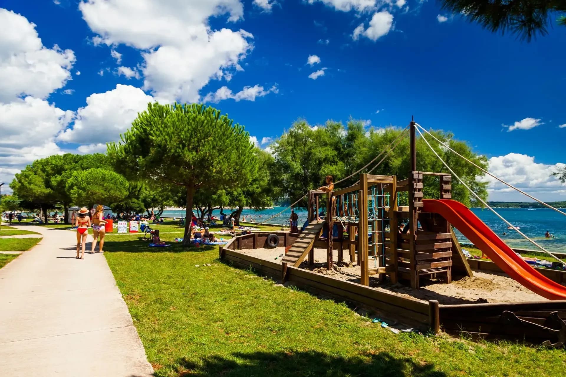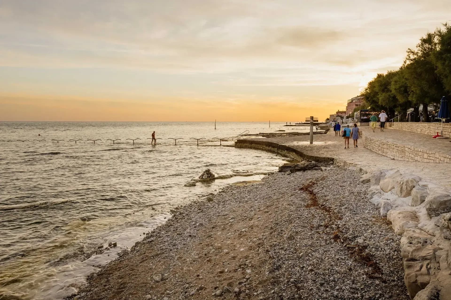 Questa spiaggia lunga e ben curata è il simbolo di Cittanova per eccellenza. Rivarela è una spiaggia adatta a tutti, dalle famiglie alle coppie, ed è perfetta per divertirsi e stare in compagnia nell’arco di tutta la giornata (insieme all’inevitabile rituale abbronzatura-pisolino all'ombra). La spiaggia è completamente pavimentata e si trova lungo la passeggiata lungomare che porta dall'hotel Aminess Maestral al centro della città. L'accesso al mare è reso possibile grazie agli appositi moli e ai corrimano. La ricca selezione di ristoranti e bar completerà la vostra esperienza in spiaggia.