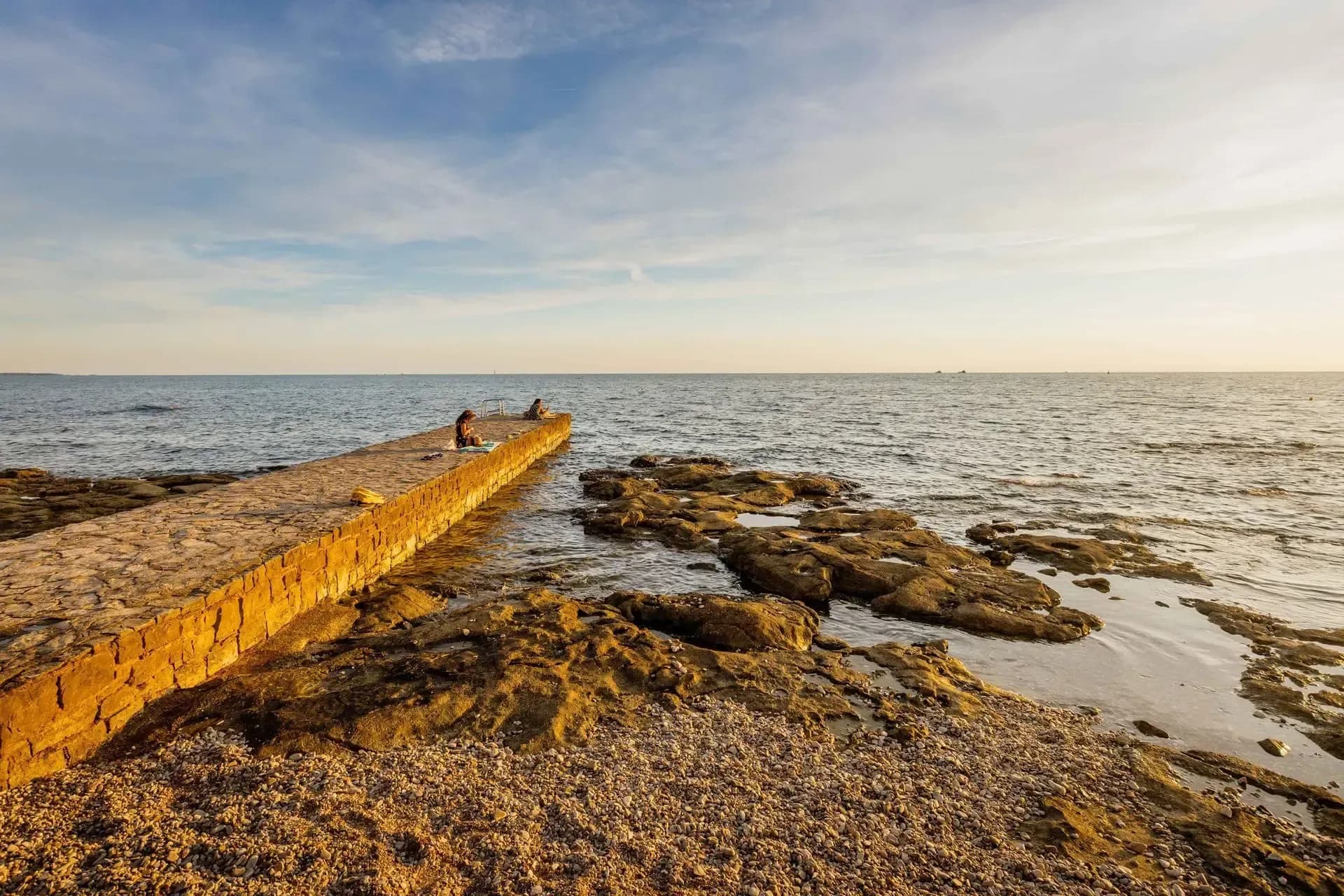 Ovdje nema klasične šljunčane obale. More se doživljava s kamenih plata, molova i stepenica koje vode ravno u kristalno čistu vodu. Jutro je rezervirano za mirno plivanje ili npr. vožnju SUP-om uz zidine, dok se u poslijepodnevnim satima obala puni životom: djeca skaču s mola, kupači hvataju posljednje zrake sunca, a kamen poprima toplu, zlatnu nijansu. Belveder i Rotonda daju ovoj plaži dodatni arhitektonski karakter, stvarajući kulisu kakvu rijetko koja gradska plaža ima. Ovdje se more ne odvaja od grada. Ono je njegov prirodni produžetak.