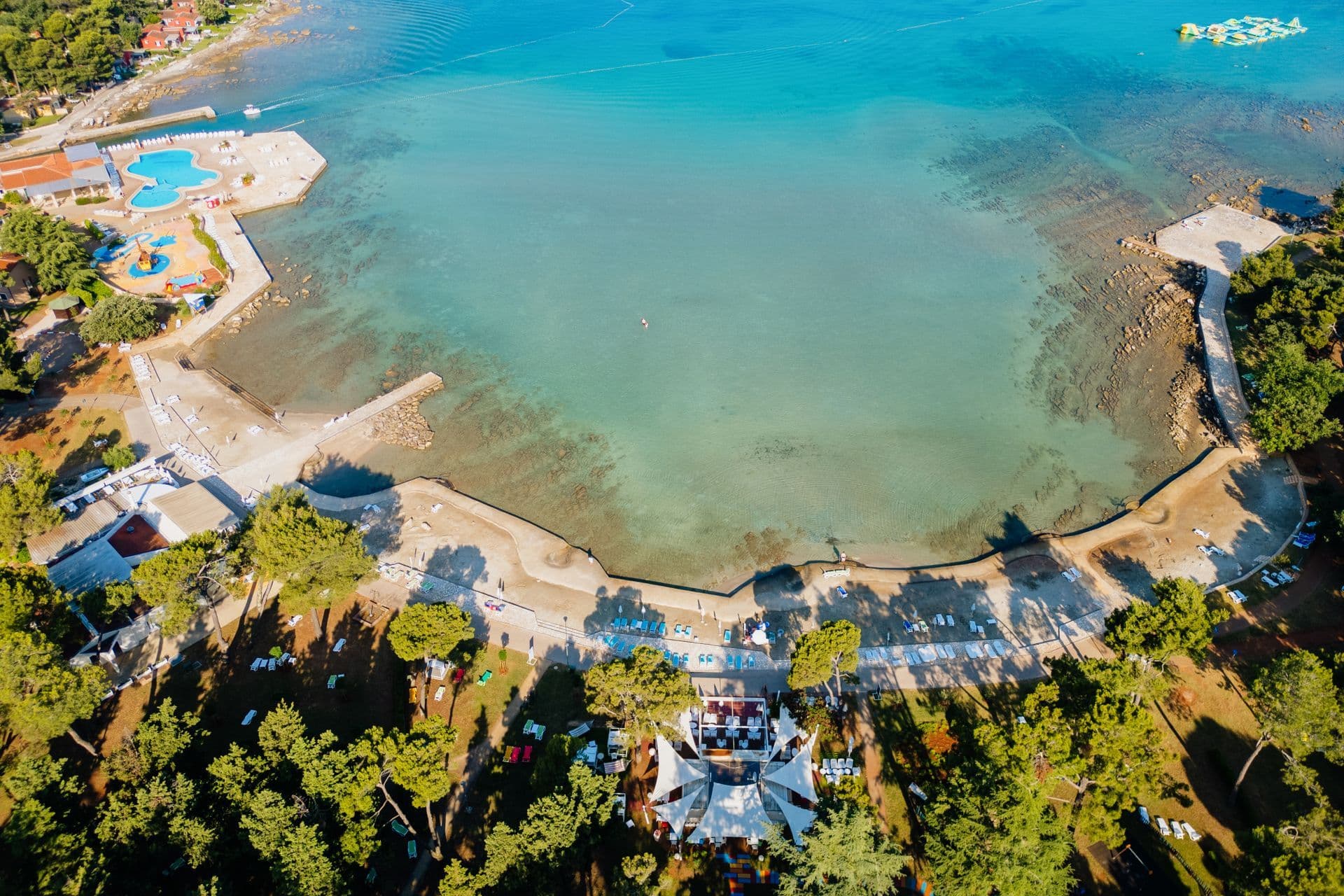 Plaža Osmica nalazi se 2 km od centra Umaga u Stella Maris Resortu, u blizini apartmana Stella. Popločena pješčana plaža idealna je za obitelji s malom djecom. More je vrlo plitko s pristupačnim ulazom. Okružena je zelenilom i hladom borova, a odgovarat će i onima koji ne vole predugo izlaganje izravnom suncu. U blizini plaže nalaze se vanjski bazen s morskom vodom i dječji bazen sa zabavnim gusarskim brodom.
