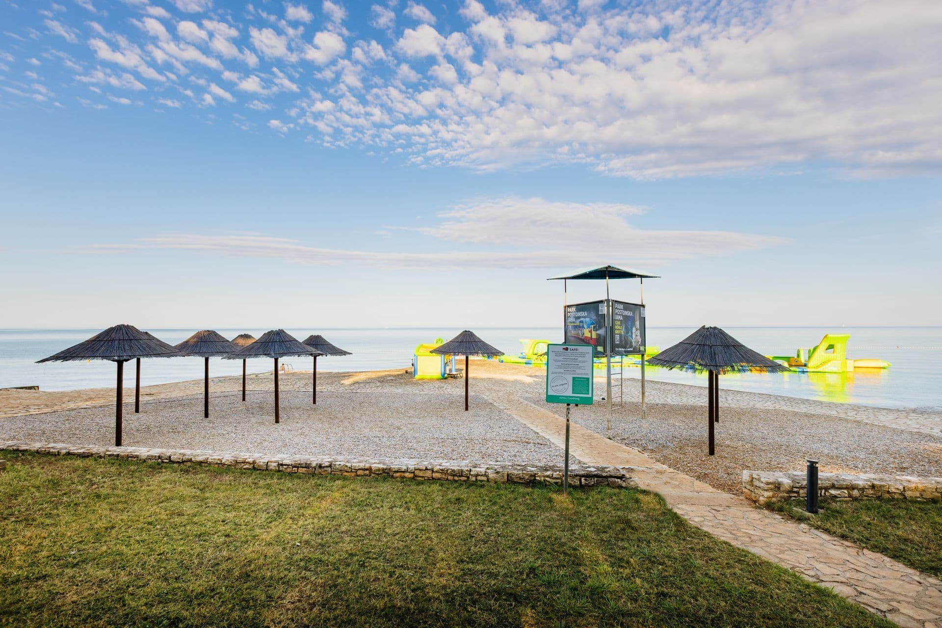 Plaža Villa Rosetta nalazi se u naselju Zambratija, kraj hotela Villa Rosetta, 5 km od centra Umaga i 2 km od Savudrije. Kamenito - šljunčana plaža idealna je za obitelji. More je plitko s pristupačnim ulazom. Okružena je zelenilom i hladovinom borova, pa odgovara i onima koji ne vole predugo izlaganje izravnom suncu. Plaža je smještena u jednoj od najljepših uvala sjeverozapadne istre i pruža pogled na ostatke antičkog grada Sipara. Na plaži se mogu iznajmiti ležaljke i suncobrani te je opremljena tuševima a pored plaže posjetiteljima je na raspolaganju kvalitetan buffet sa osvježavajućim pićima, sladoledom i gourmet ponudom.