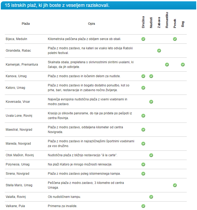 Istra ima brez najmanjšega dvoma najbolj čiste in najbolj urejene plaže na Hrvaškem. Istrski polotok se v celoti koplje v kristalno modrem Jadranskem morju, na njegovi obali pa se razprostira celo 43 plaž, ki se ponašajo s prestižno modro zastavo! To je skupaj 42 % od vseh hrvaških plaž, na katerih vihra ta mednarodni simbol izvrstnosti.