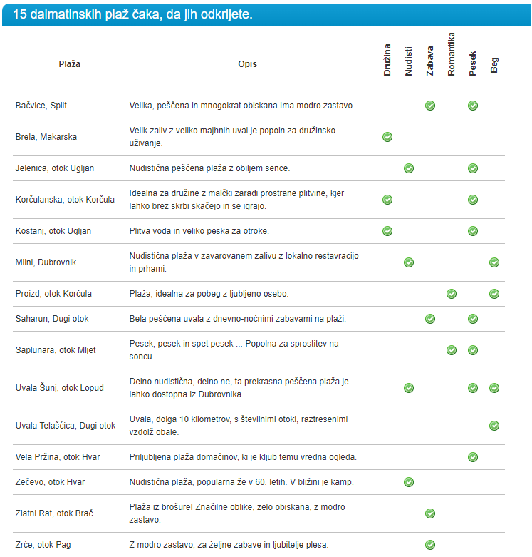 Dalmacija ponuja kar nekaj plaž, pripravljenih, da jih odkrijete, na njih pa vihra 26 modrih zastav, ki pričajo o čistosti plaže in morja.