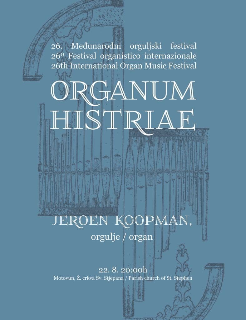 Letos bo cikel trajal več kot en mesec, začel pa se bo 22. avgusta v Motovunu, kjer bo ob 20. uri v župnijski cerkvi sv. Štefana nastopil eden najbolj obetavnih mladih nizozemskih organistov, Jeroen Koopman.