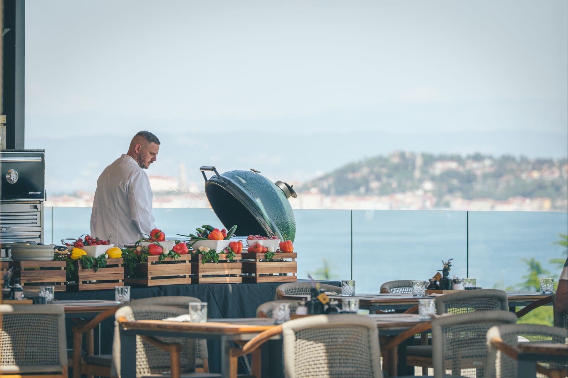 Uživajte v sočnih BBQ specialitetah in osvežilnih pijačah, medtem ko se pred vami razprostira panoramski razgled na Jadransko morje, ob glasbenem nastopu Bernarda Udovičića.