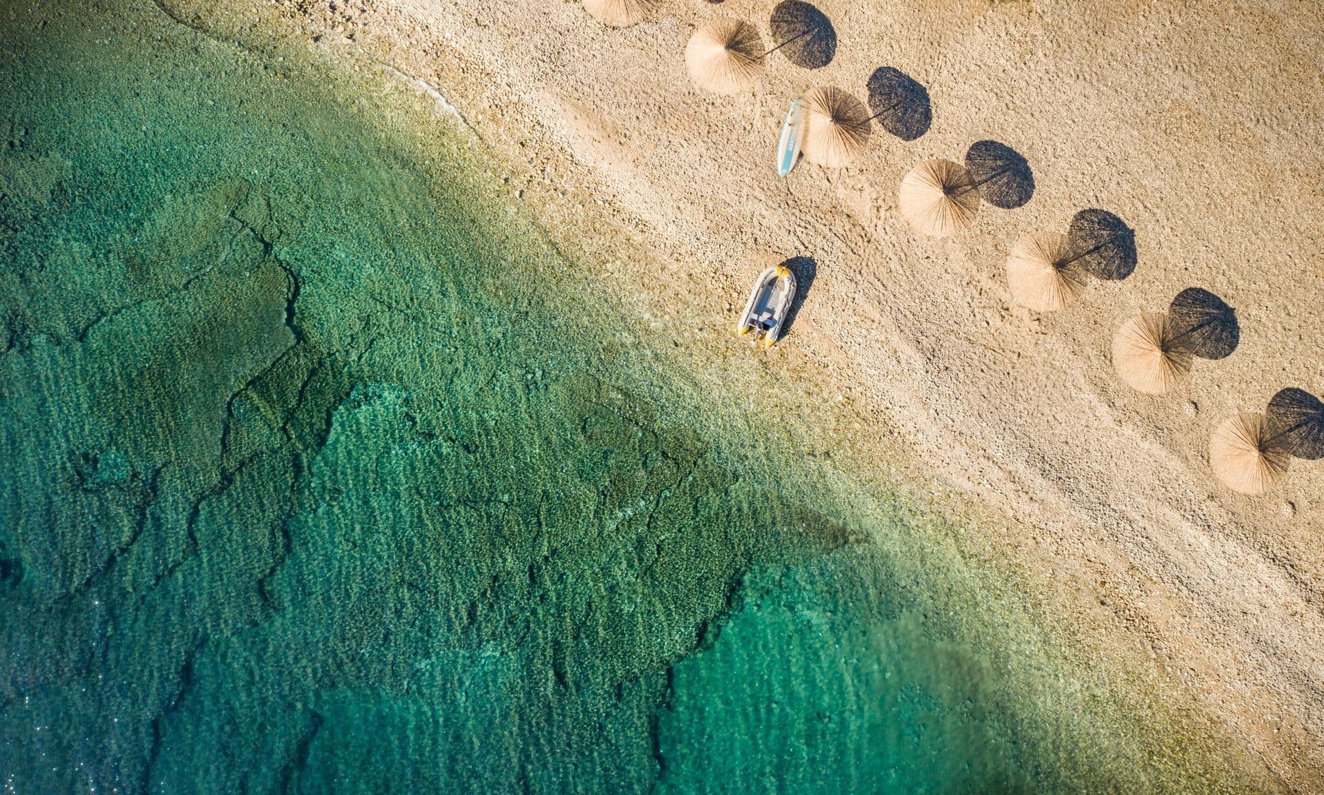 Ova, Plavom zastavom, nagrađena plaža nalazi se južno od Novigrada u sklopu Aminess Maestral Hotela. Glavni kupališni dio uređen je iznimno finim šljunkom koji se stapa s Jadranskim morem. Slamnati suncobrani pažljivo su pozicionirani duž cijele plaže pružajući svojim posjetiteljima zaklon od sunca. Plažu dodatno krase popločene staze, pitoreskna travnata područja, teniski tereni i ostali sportski sadržaji.